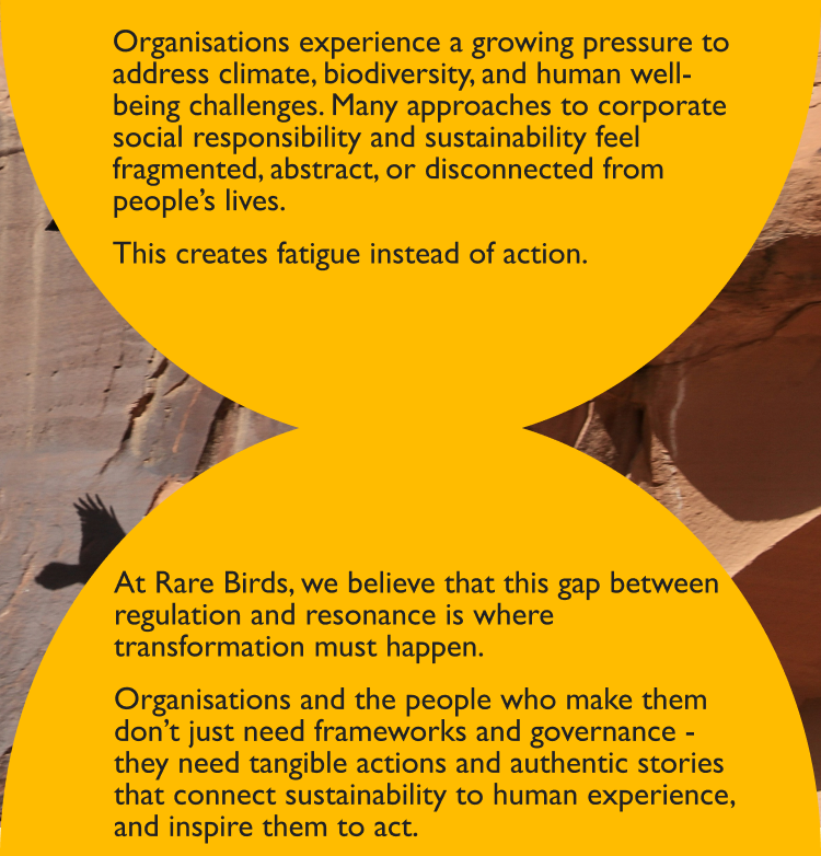 Corporate engagement for people and planet creates lasting positive change when it makes sense for their business and deep meaning for the teams who bring it to life. Rare Birds understands this balance truly.
